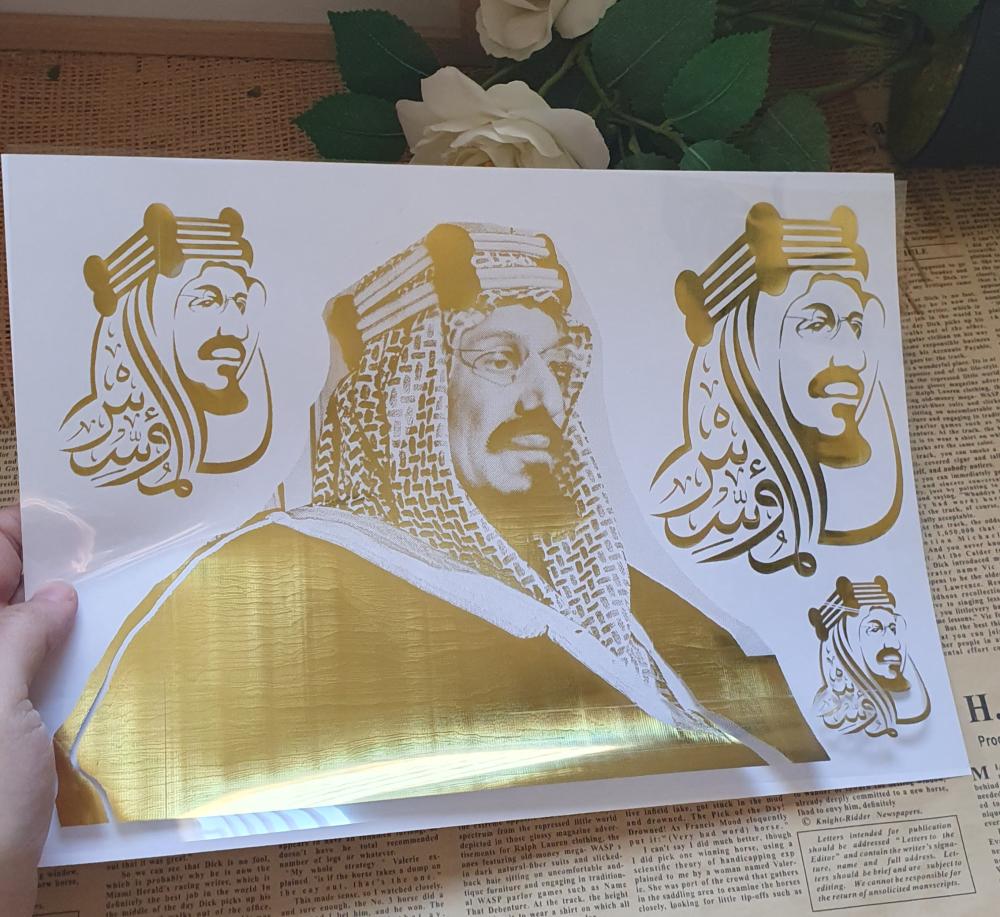 ل يوم التأسيس صورة الملك عبد العزيز المؤسس مطبوعة ذهبي او فضي يمكن تعديل المقاسات